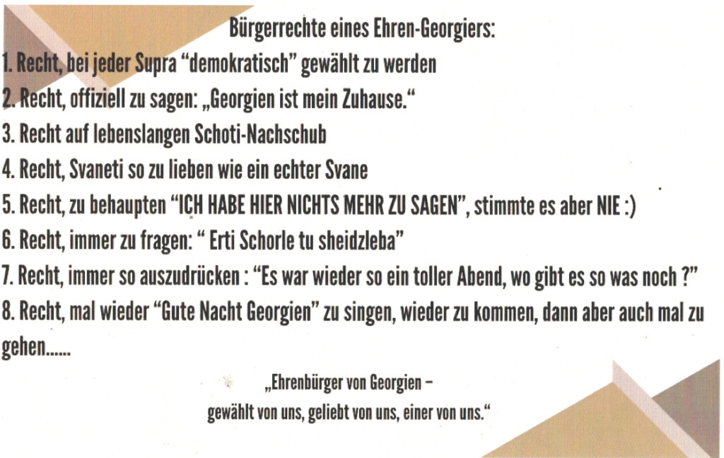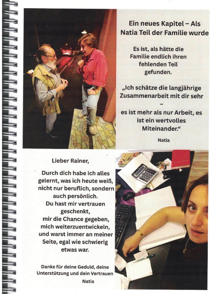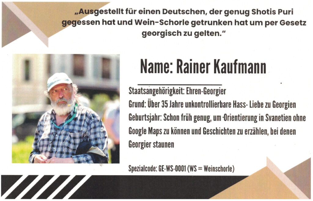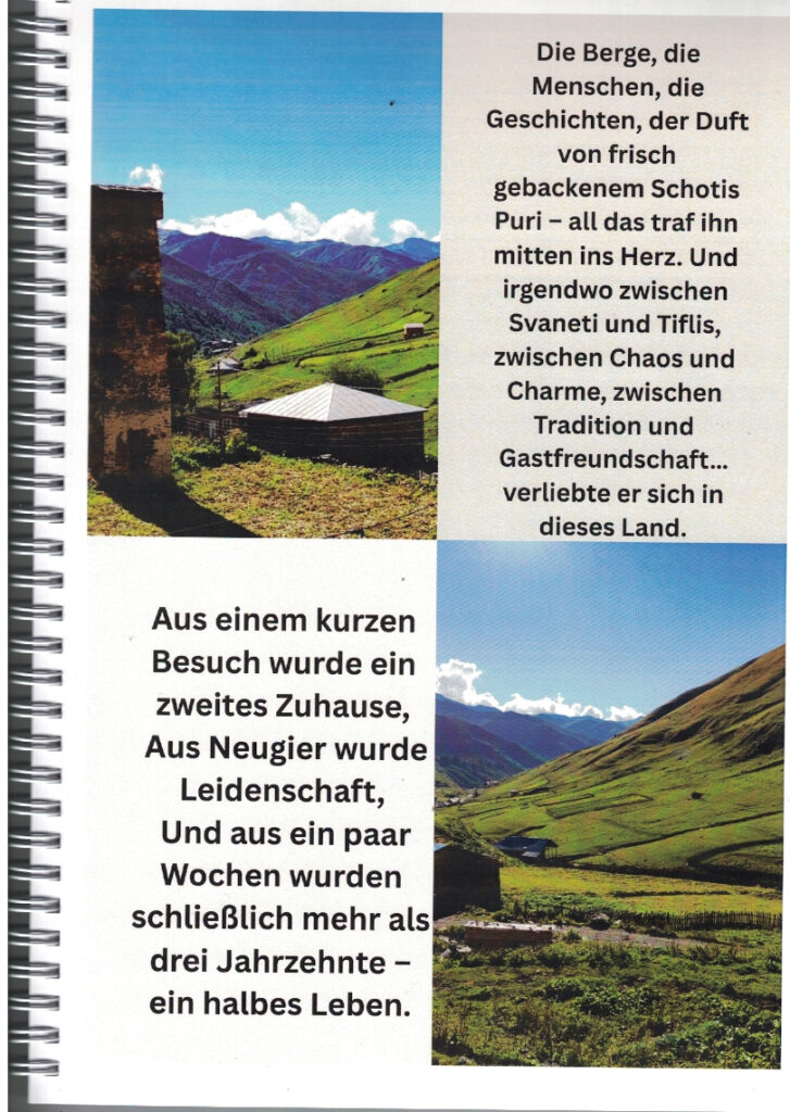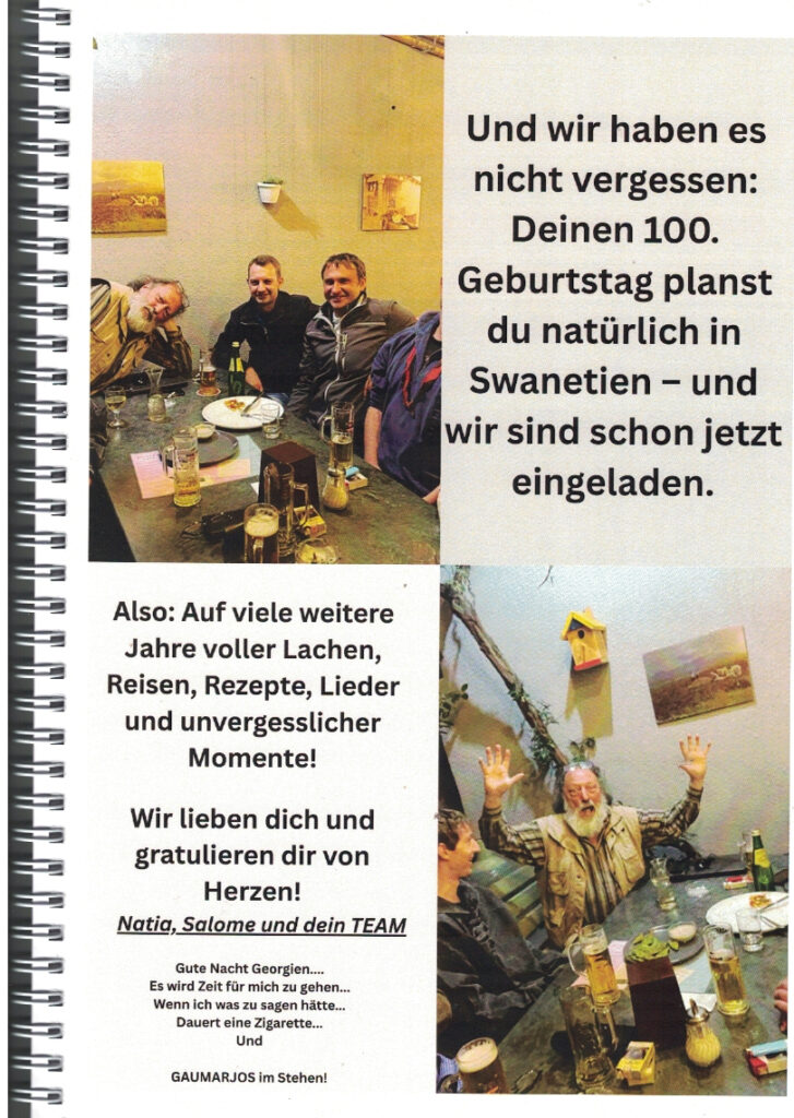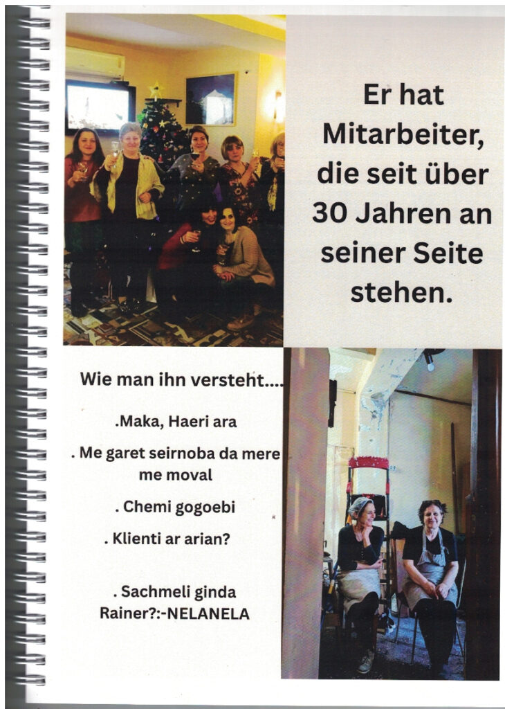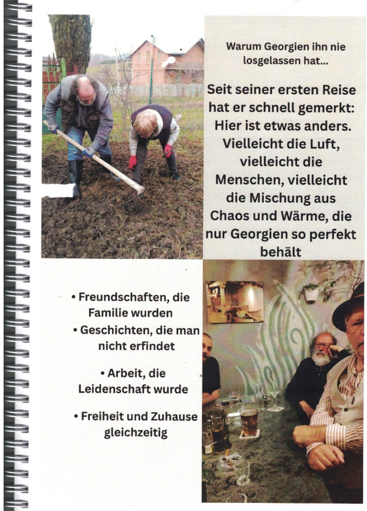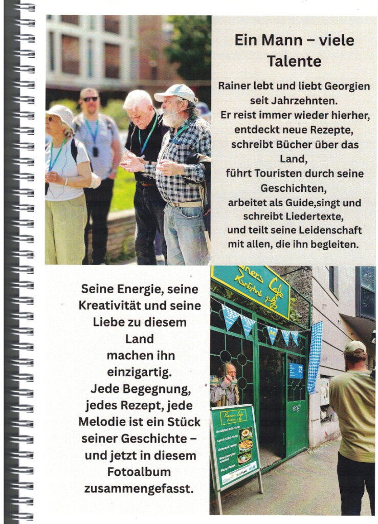 Zum 75. Geburtstag von Rainer Kaufmann, der vor 35 Jahren erstmals nach Georgien kam und dann dort seine zweite Heimat fand, widmeten ihm die Damen seines Teams in Tbilissi diese Foto-Dokumentation, in der sie an 35 Jahre „Abenteuer, Arbeit, Wein und Wunder“ erinnerten, die sie gemeinsam mit ihm erlebt haben.